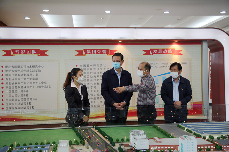 4月14日,宜昌市政協(xié)副主席王仁俊在枝江市政協(xié)主席方明柱、副主席董廣平和枝江酒業(yè)董事長(zhǎng)張春雷、第一書記張華、財(cái)務(wù)總監(jiān)亓新明的陪同下,參觀…